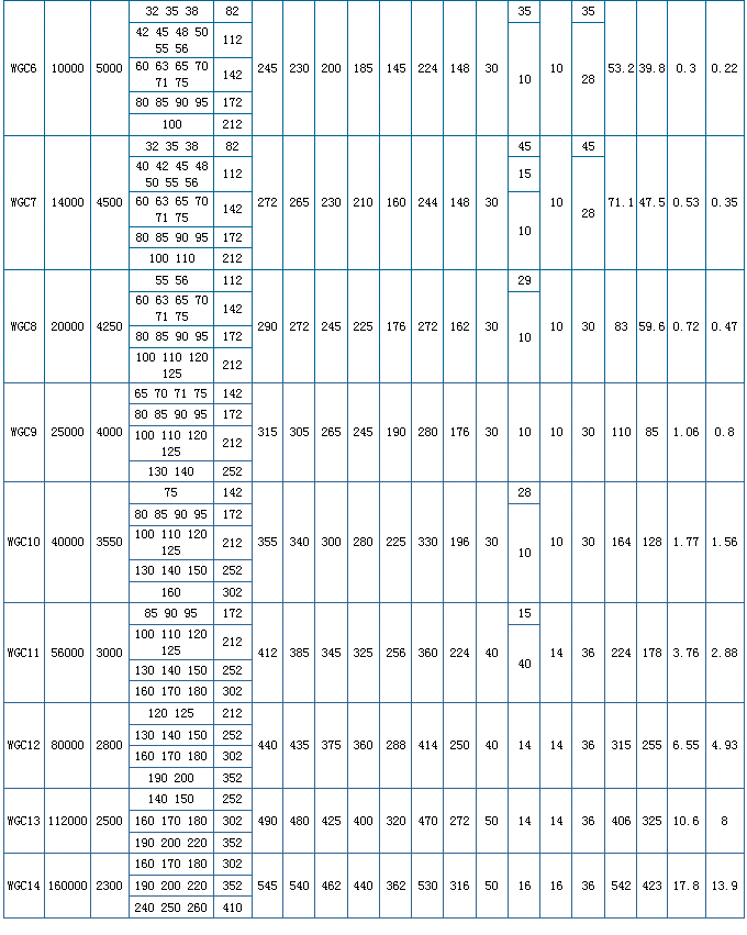 WGT型--接中間套型,適用于兩軸長距離聯接,許用轉速[n]取決于中間套的長度和質量,并應驗算臨界轉速;