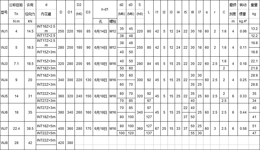 WJ型--內(nèi)花鍵聯(lián)接型;