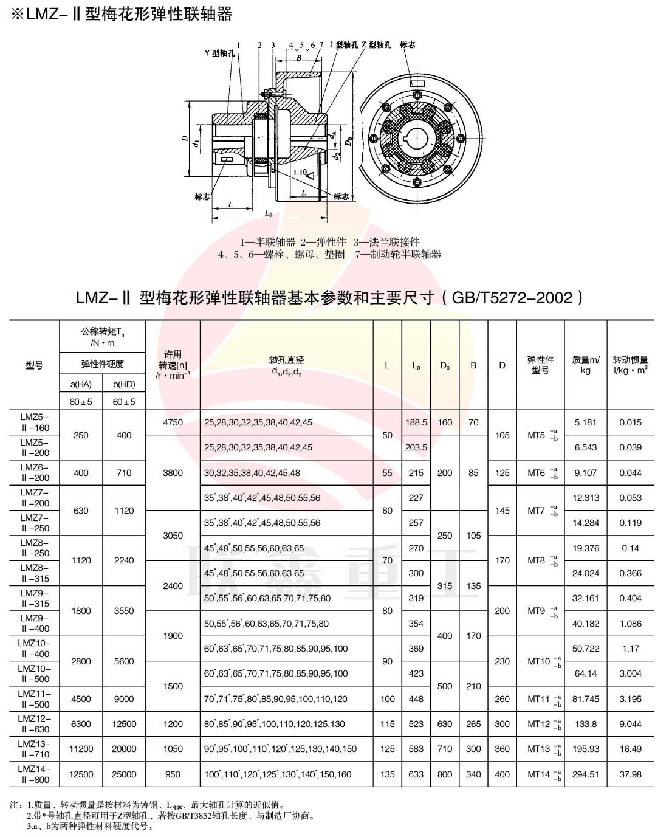 MLL-II(LMZ-II)梅花聯軸器 特點及應用場合:具有補償兩軸相對偏移、減振、緩沖性能、徑向尺寸小,結構簡單、不用潤滑、承載能力較高,維護方使、更換彈性元件需軸向移動 (MLS型除外),適用于聯接同軸線,起動頻繁,正反轉變化,中速、中等轉矩傳動軸系和要求工作可靠性高的工作部位。不適用于重載、低速及軸向尺寸受艱制,更換彈性元件后兩軸對中困難的部位。