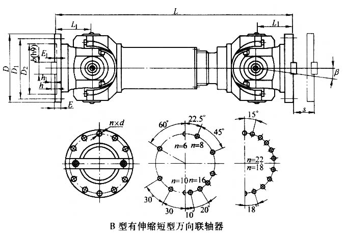 B型十字軸萬向聯軸器基本參數和主要尺寸(JB/T 3241-2005) mm